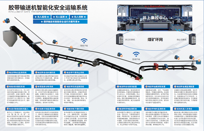 这款机器人以AI人工智能技术为基础,模拟人的感知方式——“望、闻、听、切、思”,自动化地对输送机巷道进行巡检、数据采集和智能分析。地面集控室可以实时接收来自机器人的现场数据,皮带机巷道内的声音、温度、气体等状况一览无余。这不仅为井下环境和设施异常状况及设备运行故障的超前预判和预警提供了有力支持,还大大提高了巡检效率和矿山的安全管理水平。