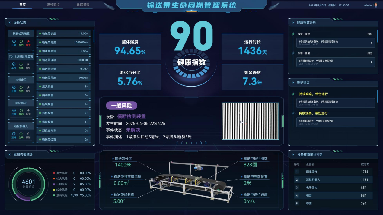 戴德测控配套的两套核心系统分别为智能化巡检系统与输送带生命周期诊断系统,二者协同发力,构建起全流程设备管控体系。其中,智能化巡检系统可实现井下皮带设备的自动化巡检,替代传统人工巡查,精准捕捉设备异常信号,规避井下复杂环境带来的巡检盲区与安全风险;输送带生命周期诊断系统则聚焦设备全生命周期管理,通过实时采集分析皮带运行数据,预判设备老化趋势与潜在故障,为设备预防性维护提供科学依据,从源头保障运输系统稳定运行。